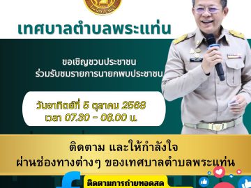 ยินดีต้อนรับสู่เทศบาลตำบลพระแท่นค่ะ โทร : 034 601 988 เวลาทำการ จันทร์-ศุกร์ : 08:30 น.– 16.30 น.